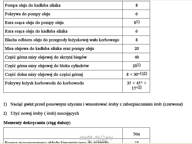 Momenty dokrecenia c20xe 7